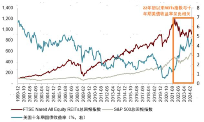 ►催化剂方面,由于利率环境会通过影响REITs的融资成本和市场整体流动性来影响REITs资产的表现,2022年初以来该REITs指数与美国十年期国债收益率走势呈反向关系,近期美国降息预期再次升温,美国十年期国债收益率5月从高点快速下探后略有回升,对于美国宽基REITs指数可能也是较好的配置窗口。