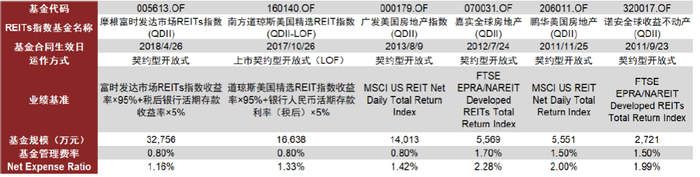 内地主要投资于REITs的公募基金起步较晚,目前摩根、南方、广发、嘉实、鹏华、诺安均有布局。我们统计国内现存6只主要投资于REITs的QDII基金,管理人分别为摩根、南方、广发、嘉实、鹏华和诺安,规模分别为3.28、1.66、1.40、0.56、0.56与0.27亿元;其中摩根、南方、广发的产品为指数基金,其他3只产品为以REITs指数为业绩比较基准的主动管理型基金。