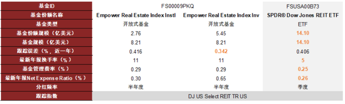 当存在多只指数基金跟踪同一个指数时,可通过定量和定性指标选定合适的指数基金产品。以图表15中跟踪DJ US Select REIT总回报指数的2只REITs指数基金(共3种份额类型)为例,可关注的筛选指标包括但不限于: