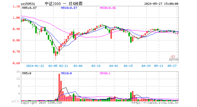 5月27日中证2000ETF(159531)份额减少400.00万份,最新份额3.13亿份,最新规模2.69亿元