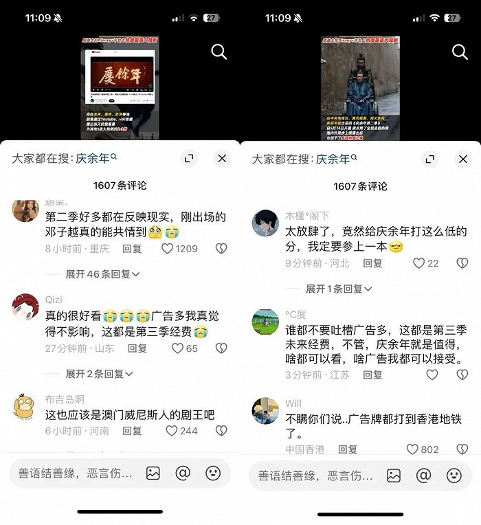 不过,本剧首播日的几集内容主要集中在为主角范闲“假死欺君”填坑过渡上,平淡的剧情让《庆余年2》陷入了热度与吐槽齐飞的“尴尬”。贴片广告也一如既往地引发了吐槽。有网友称“《庆余年2》是五步一广告,十步一堆广告”。