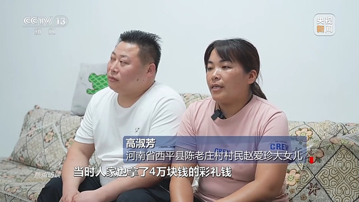 河南省西平县陈老庄村村民赵爱珍大女儿 高淑芳:当时,人家也拿了4万块钱的彩礼,但是我们没有要,我感觉“零彩礼”给我们家带来了幸福。后来我们村成立了“红娘协会”,我就积极加入了“红娘协会”,去各个农户家宣传低价彩礼的理念,让更多的人受益。