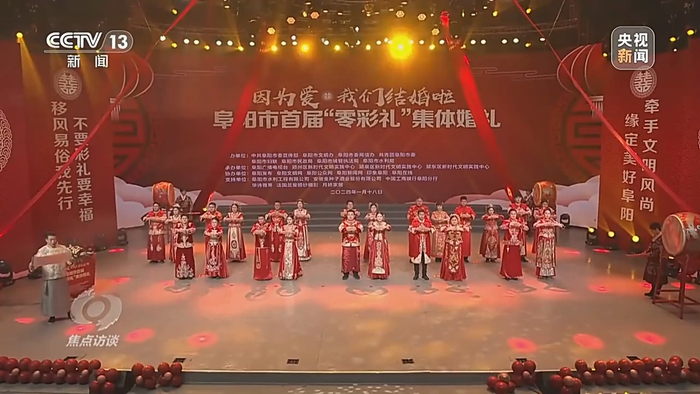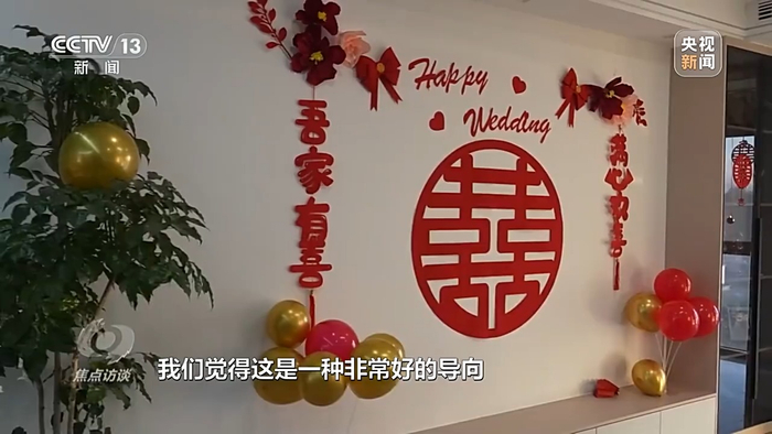 共青团中央宣传部副部长 刘钊:我们在进行社会倡导,进行文明引导,在各地举办了很多集体婚礼,确实得到了基层青年比较热烈比较积极的响应。他们用更朴素更自然更贴近自己实际需求的方式方法来筹办自己的婚礼,也来回应一些高额彩礼给他们所带来的压力,我们觉得这是一种非常好的导向。