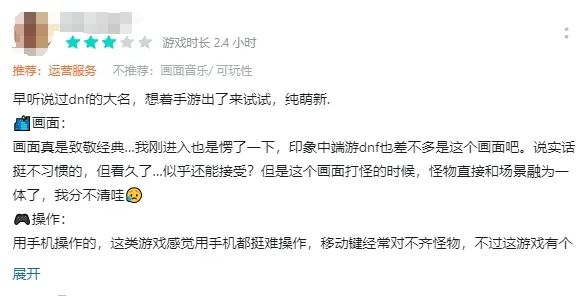 不过,这样一款现象级的产品也并非完美无缺,作为一款端游IP改编游戏,《DNF》手游也具有先天的劣势。一面是部分端游老玩家对IP还原上的体验指指点点,一面是新玩家面对各种门槛而难以入坑,这些痛点都持续考验着这款产品的后续运营能力。更不要说上线当天炸服近80分钟,相关联机功能持续不稳定(现已修复),都或多或少在产品的口碑上有所体现。