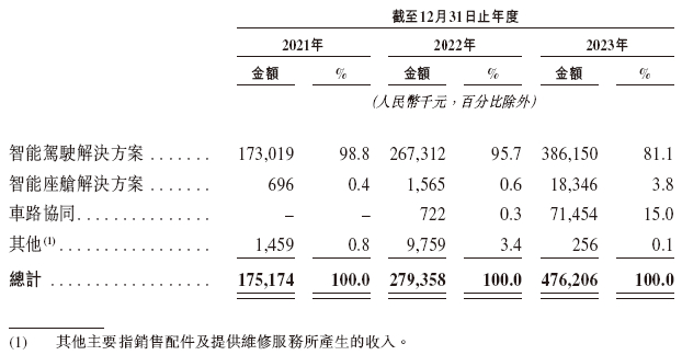 智能驾驶解决方案,为公司业务的核心和基础,主要包括iSafety、iPilot系列,以及iRobo解决方案(正在开发中,预计2024年交付)。于2021年、2022年、2023年及自2024年1月1日起至2024年5月20日,公司已分别与12、13、14及12家整车厂就18、19、20及17款车型的智能驾驶解决方案开展定点项目的持续开发,并分别与10、17、20及22家整车厂就22、50、56及60款车型进行了量产。2023年,公司智能驾驶解决方案的销量超过78万套。