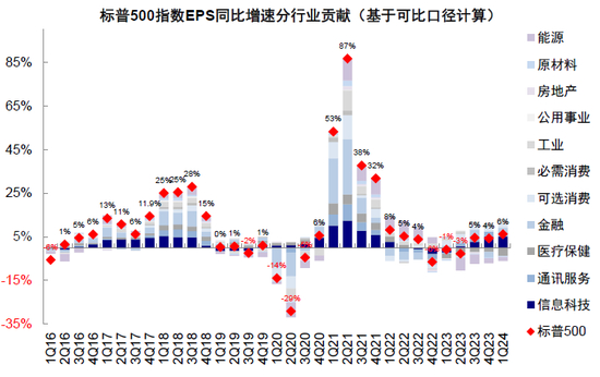 图表:可比口径下,一季度标普500指数EPS同比增速6.2%(vs.四季度的4.3%)