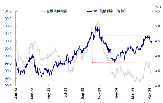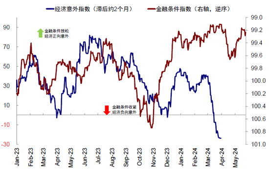 我们在《降息交易的钟摆与“终局”》中强调,金融条件当前仍需要维持偏紧来缓慢压制通胀,进而换取美联储降息开启的空间。美股、利率与大宗商品在5月初因为数据转弱就过快的交易宽松预期而新高,只会很快的使得金融条件转为宽松,进而对需求和通胀带来上行压力,而这一点对美联储是无法承受的,只能通过更长的紧缩姿态来对冲,反而对利率、股市和大宗商品带来下行压力,近期的经济数据和资产表现也再次印证了我们这一看法,体现了降息交易的再度摇摆。