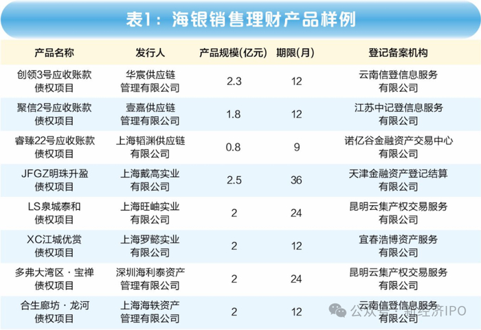 在海银财富所销售的庞大的理财产品序列中,“供应链金融产品”是其中一个重要的类别。这类产品的底层资产,通常是基于基础贸易项下的“应收账款”。换句话说,理财产品的发行人所募集的资金,用于受让“底层债权人”持有的对“底层债务人”的应收账款。