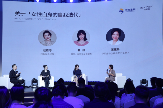此次发布会不仅展示了品牌在胶原蛋白领域的最新成果,也展示出了润熙泉品牌对于女性的关注与关怀。在发布会的尾声,润熙泉以“女性自身的自我迭代”为主题,展开了一场全女性视角的圆桌交流。在此环节中,润熙泉品牌主理人、华熙生物功能性配方负责人以及品牌挚友姜妍,分别从不同的身份角度,向大家分享了女性在自我迭代中的变化和感受,也探讨了女性在年龄增长过程中不断发生的价值体系的重新构建。