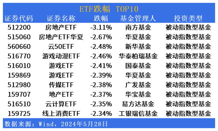 2024年5月28日,Wind数据显示,A股震荡下挫,深证成指、创业板指双双跌逾1%,TMT、房地产行业领跌,周期股逆势飘红。