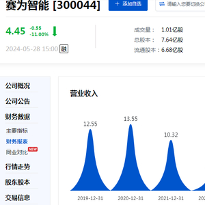或受上述问询影响,截至5月28日下午三点,赛为智能股价报收4.45元/股、收跌11.00%。(责任编辑:黄金海 )