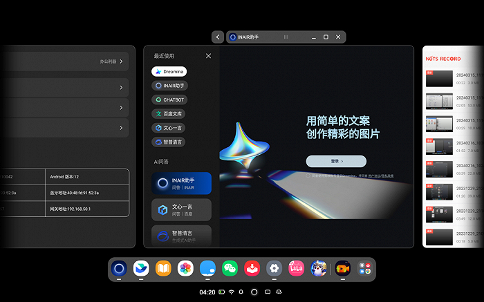 不久前,以智能眼镜为核心入口为用户提供下一代ALL-in-one移动办公解决方案的AR厂商INAIR,也发布了自研大模型AI助理与新版手机端交互应用INAIR APP,通过深化“AI+AR”核心技术融合创新解锁更多实用功能与场景应用。