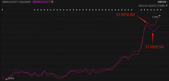 跟踪恒生央企和中证央企的分别是港股通央企红利ETF(513920.SH)、港股央企红利ETF(513910.SH),走势也是基本一致。