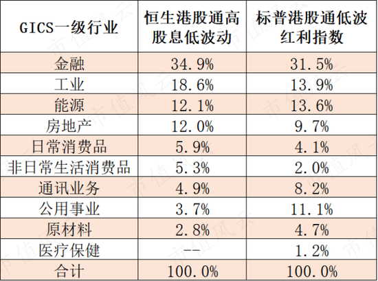 所以,从指数行业权重来看,标普低波和恒生低波差距并不大,第一大行业均为金融,不过恒生低波在工业和房地产上的权重占比更大。