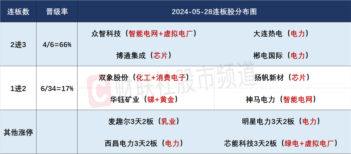 昨日午后资金遭到一定分流的电力、电网产业链今日获得资金回流并再度加强,郴电国际、大连热电晋级3连板,明星电力、西昌电力缩量反包上板。此外受益国网、南网洽谈跨市场电网以及多条重大电网工程建设的电网产业链人气同步升温,包括晋级3连板的20厘米个股众智科技在内的多股涨停,神马电力晋级2连板也刷新阶段新高。在6月份即将迎来中报预告披露大幕之际,不排除部分公司提前发布相关订单或部分经营数据预热,作为出海概念中持续性最好且叠加电改预期的电网设备股,其后续对于资金的吸引力仍可高看一眼。而电力板块中,资金总体青睐一些市值规模偏小的叠加绿电交易品种,事实上在本次电改中重点提及的消纳、调峰环节中,火电的受益程度远高于水电、核电等细分,一些低估值的叠加绿电经营的火电类个股仍有待价值重估。