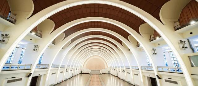 上世纪五十年代,中苏友好大厦平地而起,谱写出上海的新高度。伫立在上海展览中心的外围,远观它的轮廓,整个楼群呈现俄罗斯古典主义建筑风格,局部糅合了巴洛克艺术特点。以序馆为中心,塔楼和红色五星高耸其上,其他建筑环绕四周,沿中轴线依次展开,共同组成一个和谐大气的整体。