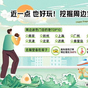 与去年可以利用“拼假”不同,今年端午假期有些“前后不接”,旅客多考虑进行短途周边游。携程数据显示,端午假期国内周边游预订量同比增长20%,周边游热门目的地分别为:南京、杭州、上海、广州、苏州、天津、北京、济南、秦皇岛和青岛。截至5月25日,目的地为江苏的端午假期机票预订单量同比增长16%,周边游预订单量同比增长13%。