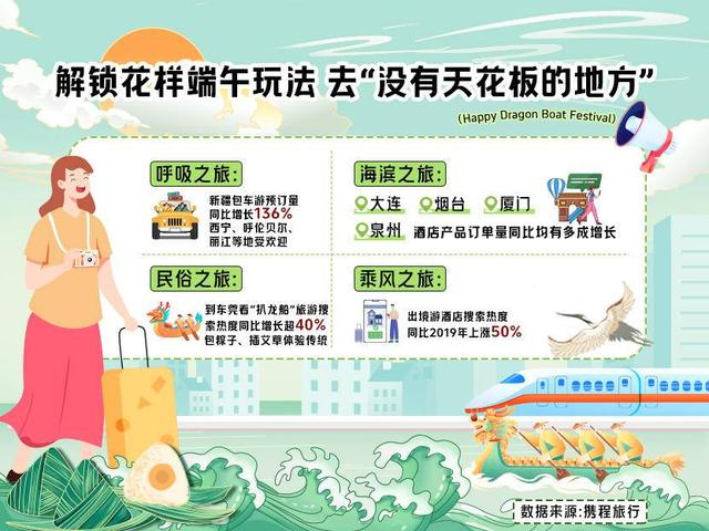 端午假期的玩法则可以分为呼吸之旅、海滨之旅、民俗之旅和乘风之旅。