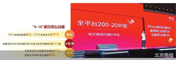 若是对比小红书、快手等平台,传统货架电商的焦灼有迹可循。今年“6·18”,不少商家在小红书上店播。大促首日,小红书直播成交GMV为去年同期的6倍,其中店播GMV为去年同期的4.2倍。尽管快手在5月20日才解封头部主播辛巴,但也不影响其在随后的五天内实现了泛货架支付订单量同比增长67%、搜索支付GMV同比增长65%的成绩。