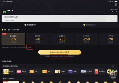 腾讯视频开通VIP,连续包月/季/年排在前列,其中首3月每月低至15元。