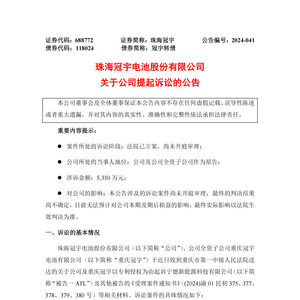 涉诉金额5350万元!珠海冠宇对宁德新能源科技有限公司提起专利诉讼