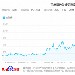 与之同步的是运动服饰市场的火热。部分服饰品类更是年年走红,比如瑜伽裤。百度指数“瑜伽裤”关键词搜索趋势显示,2021年起,“瑜伽裤”开始受到大众广泛关注,搜索指数持续攀升,并维持在较高水平(如今仍是2020年以前的3倍多)。今年3月,#瑜伽裤卖爆了的话题还冲上了微博热搜。