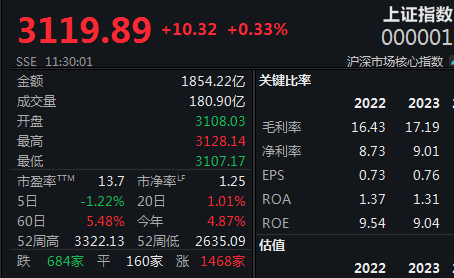 周期股保持强势,沪指半日震荡上扬0.33%