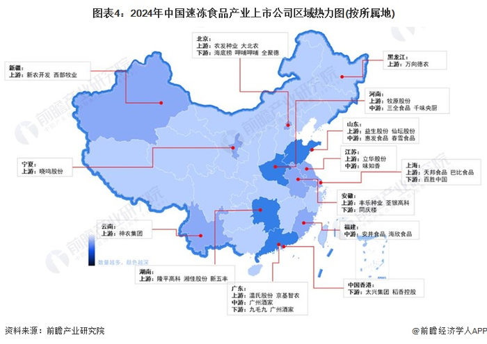 速冻食品行业产业链区域热力地图:山东省和河南省为主要聚集地