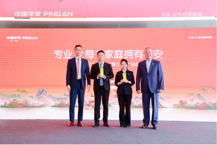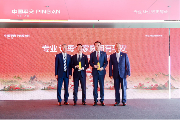 庆典上,平安集团董事长马明哲、平安集团监事会主席孙建一、平安集团联席首席执行官兼总经理谢永林、平安集团党委书记胡剑锋、平安集团联席首席执行官郭晓涛共同启动“三省”推广计划。