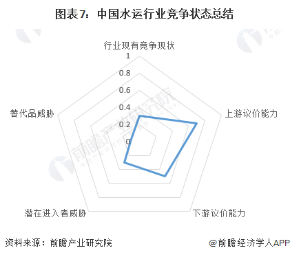 根据以上分析,对各方面的竞争情况进行量化,1代表最大,0代表最小,目前我国水运行业五力竞争总结如下:
