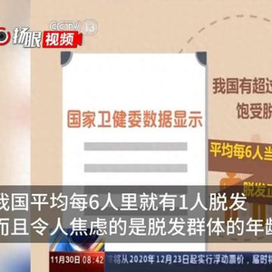 脱发已经慢慢成为不少人的“焦虑来源”,由于生活作息不规律、工作压力大,加上遗传等因素,当下年轻人备受脱发困扰。据国家卫健委调查数据显示,我国脱发人数超过2.5亿,平均每6个人中就有1人脱发。