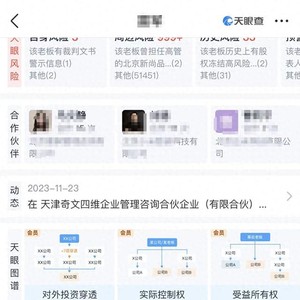 老板商业履历是商业道德、商业洞察力、企业经营策略的综合体现,是评估合作方可靠程度的要素之一。此前,因给某公司副总裁上“操盘手课”的网红受到媒体关注,其商业版图亦被揭秘。同时,有媒体通过天眼查“商业履历”功能发现,该网红初期投资企业多为商贸、餐饮,后期才逐渐涉足到文化传媒、教育、网络技术等领域。
