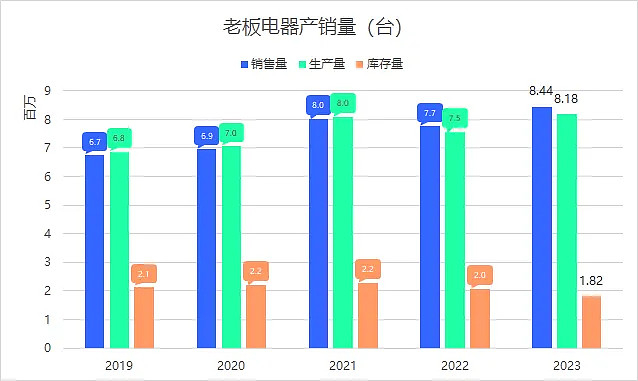 但是,无论涨价原因是什么,消费者一旦感觉到涨价就会反应到厂家的销量上来了。经过2021年、2022年的连续涨价之后,老板电器2022年销量立马下降,下降幅度倒不大,只是微幅下降3.35%,但对于销量突破800万台的老板电器来说,那也是少了近27万台的销量!