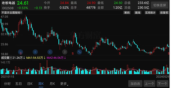 相比之下,国内厨电老大老板电器表现较弱,不仅股价表现弱,业绩表现也弱!