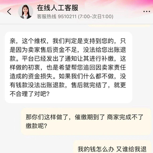 意识到被骗的李女士向平台求助,但淘宝客服表示,这种商家已经跑路了,他们也找不到。
