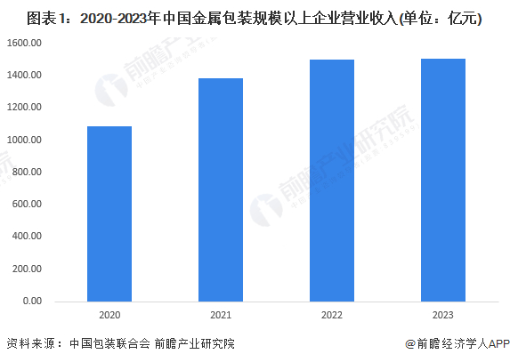 金属包装具有资本密集、技术密集,内需型为主、出口为辅,产品替代性高,市场季节性变化大,市场集中度高等产业特点,是中国包装工业的重要组成部分。金属包装容器企业主要为食品、饮料、油脂、化工、药品及化妆品等行业提供包装服务。近年来,随着居民生活水平的提高及国民经济的增长,食品、饮料、医药等相联行业的消费需求呈增长态势,中国金属包装容器制造行业的发展迅速。2023年中国金属包装容器行业规模以上企业(年营业收入2000万元及以上全部工业法人企业)累计完成营业收入1505.62亿元,较2022年小幅下降1.56%。