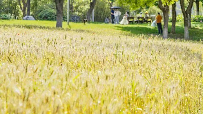 而在湖北武汉园博园景区,也有一块上千平方米的麦地。如今,这块麦地上的小麦已经成熟,麦穗饱满,煞是喜人,让人油然想到一句古诗:“最爱垄头麦,迎风笑落红。”据报道,园方表示,今年拟与园区研学组合作,将开展割麦子活动。研学导师会对孩子们进行麦子科普,以及如何正确割麦(割麦、捆麦、运麦、拾麦)等,同时还会用麦穗插花。