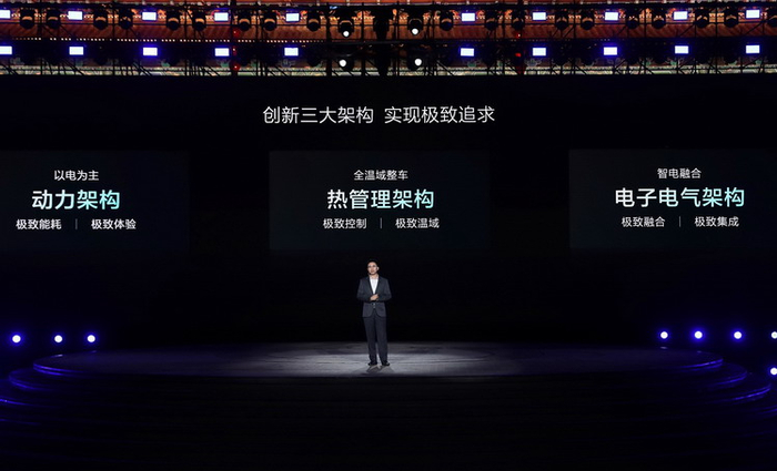 智电融合电子电气架构。集成行业首个插混动力域控七合一,实现了功能复用,功率密度提升18.3%。行业首创芯片集成,实现VCU(电压控制单元)和双MCU(电机控制单元)三脑合一,芯片算力提升146%,充分提升整车的集成度和性能。