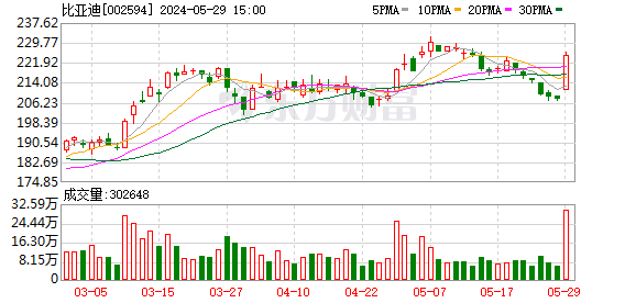 受此消息影响,5月29日,比亚迪收涨8.35%。