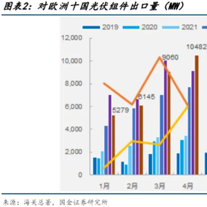 作为外贸“新三样”之一,中国光伏备受海外市场的“宠爱”,出口数据来看,4 月电池组件出口 25.2GW,同比上涨25.9%,欧洲十国单月出口量创历史新高。(来源:国金证券)