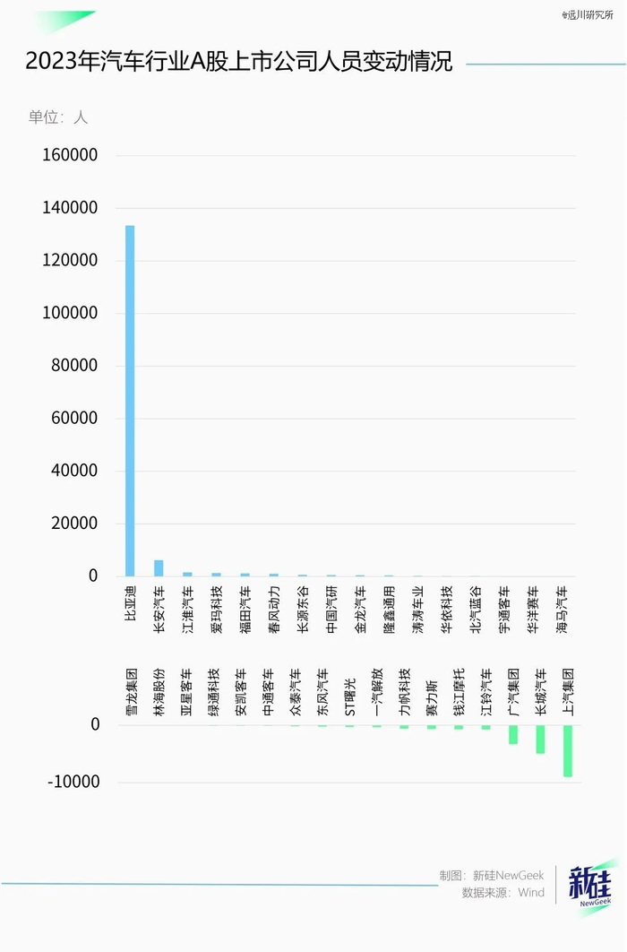 人员流失最多的三家上市汽车公司依次是上汽集团(-8998)、长城汽车(-4928)、广汽集团(-3296)。