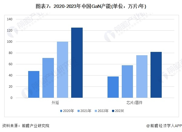 2022年,GaN产能增加31%。2022年,国内GaN外延产能达到100.2万片/年(折合4英寸),相较于2021年增加40.7%,初步统计2023年产能在125万片/年左右;芯片/器件2022年产能达到76万片/年,相较于2021年增加31%,初步统计2023年产能达82万片/年。