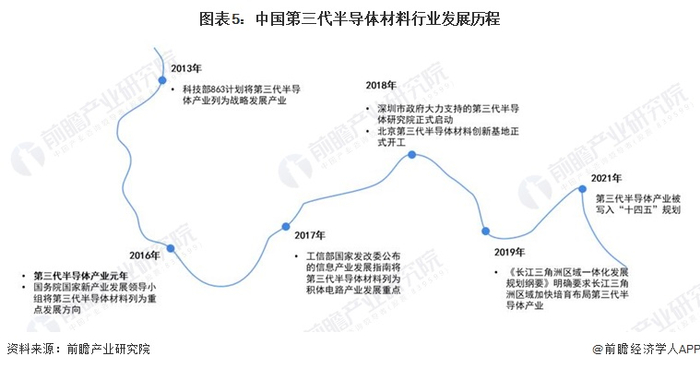 中国第三代半导体兴起的时间较短,2013年,科技部863计划首次将第三代半导体产业列为国家战略发展产业。