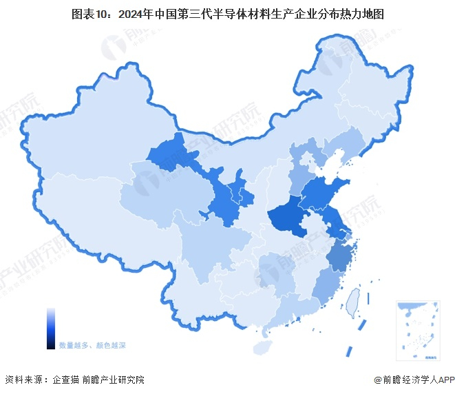 从我国第三代半导体材料行业区域分布来看,第三代半导体材料行业产业链企业在全国绝大多数省份均有分布。其中河南省第三代半导体材料企业数量分布最多,同时山东、江苏和甘肃等省份企业数量也相对集中。