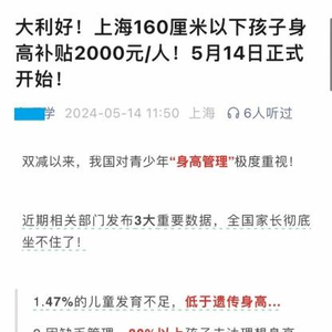 日前,执法人员在日常巡查中发现,某教育咨询类公众号上发布了“突然宣布——大利好!上海160厘米以下孩子身高补贴2000元/人!5月14日开始”的推文,通过层层套路,诱导消费者“上钩”。