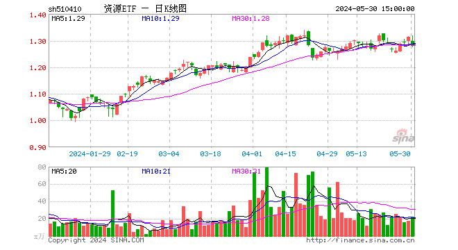 规模方面,截止5月29日,资源ETF(510410)最新份额为4.88亿份,最新规模为6.40亿元。回顾2023年12月29日,资源ETF(510410)份额为3.24亿份,规模为3.50亿元。即该基金今年以来份额增加50.58%,规模增加82.92%。