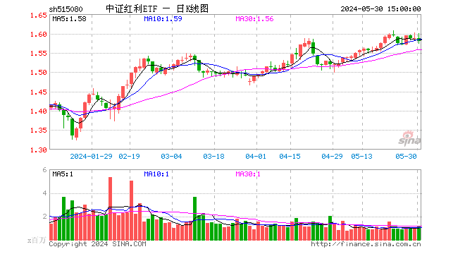 5月30日,招商中证红利ETF(515080)收盘跌0.57%,成交额1.91亿元。