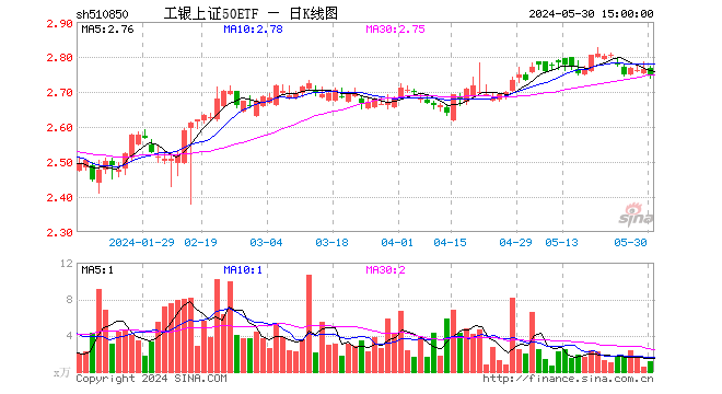 5月30日,工银上证50ETF(510850)收盘跌0.58%,成交额310.97万元。
