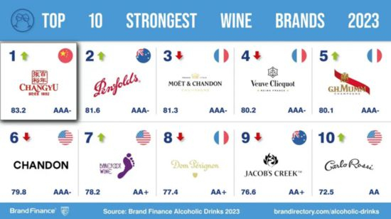 图片张裕成为“2023全球最强葡萄酒&香槟品牌”榜单第一名