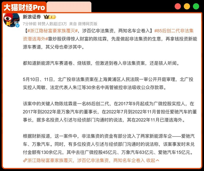 最后一查,拿不回来的130亿里,广微控股拿走45亿,万象汽车拿走63亿,爱驰汽车拿走15亿。但这里的大多数,应该落入了陈炫霖的口袋。